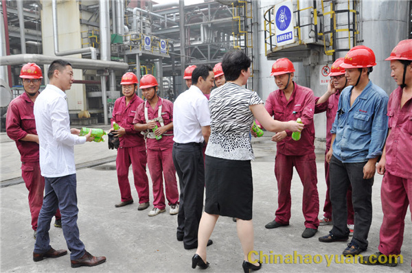 時下正值高溫酷暑,奮戰(zhàn)在生產(chǎn)一線的員工們頂烈日、戰(zhàn)高溫,為穩(wěn)定生產(chǎn)及加快檢修進度,員工們揮灑汗水,正接受著高溫“烤”驗。8月6日上午,市政府副秘書長趙志賀,市總黨組書記、工會副主席房繼紅,在市安監(jiān)局局長李哲、市化工協(xié)會會長李智的陪同下,蒞臨昊源集團,看望慰問高溫期間依然堅守在生產(chǎn)一線的昊源員工,關(guān)切地詢問生產(chǎn)和員工生活情況,并為員工送上防暑降溫物品。