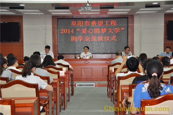 8月21日,阜陽團(tuán)市委舉行2014年希望工程“愛心圓夢(mèng)大學(xué)”助學(xué)金發(fā)放儀式,阜陽市副市長方旭出席儀式。