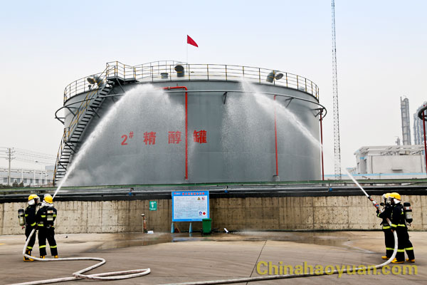 12月20日,2018年安徽省阜陽(yáng)市突發(fā)環(huán)境事件應(yīng)急演練在昊源公司舉行。演練以昊源公司航天爐系統(tǒng)2號(hào)4000立方米甲醇儲(chǔ)罐甲醇充裝連接軟管泄漏、靜電起火,在處置過(guò)程中,甲醇廢水通過(guò)公司雨水管網(wǎng)溢流進(jìn)入駱家溝,并伴有大量甲醇揮發(fā)為假想。阜陽(yáng)市委常委、副市長(zhǎng)王玉峰任演練總指揮。