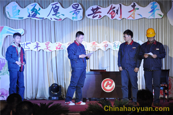 駿馬奔騰辭舊歲,金羊起舞迎新春。2月14日晚,一場(chǎng)以“追逐愿景 共創(chuàng)未來”為主題的昊源集團(tuán)2015年春節(jié)聯(lián)歡晚會(huì)在公司大禮堂隆重開幕。公司領(lǐng)導(dǎo)鄭高潮、李繼忠、凡殿才、高玉磊、楊捷、田懷廣、李廣修、高明林、張海生、王衛(wèi)峰等與廣大員工及家屬共同觀看晚會(huì),共度難忘的狂歡之夜,喜迎農(nóng)歷羊年新春。