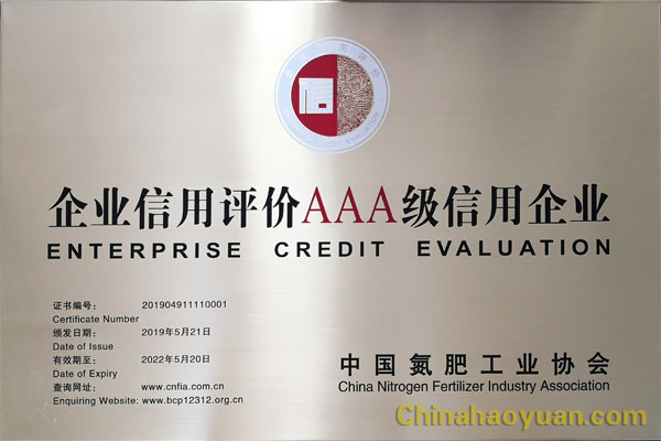 2019年5月20日至5月21日,中國(guó)氮肥工業(yè)協(xié)會(huì)第六屆五次理事會(huì)在安徽合肥召開(kāi),會(huì)上發(fā)布中國(guó)氮肥行業(yè)企業(yè)信用評(píng)價(jià)結(jié)果,安徽昊源化工集團(tuán)有限公司獲得中國(guó)氮肥工業(yè)協(xié)會(huì)企業(yè)信用等級(jí)AAA級(jí)榮譽(yù)稱號(hào)。
