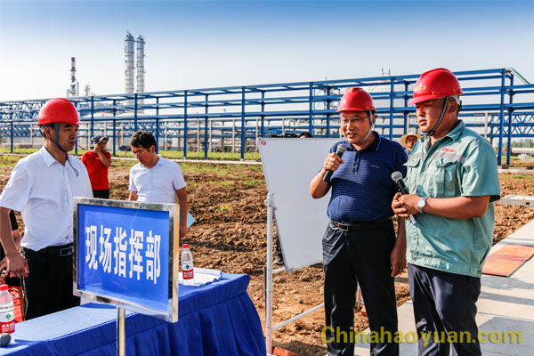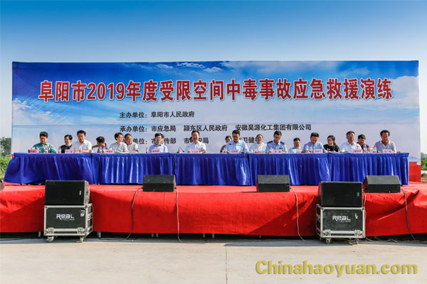 7月5日下午,阜陽市2019年度受限空間中毒事故應(yīng)急救援演練在昊源公司阜陽煤基新材料產(chǎn)業(yè)園區(qū)舉行。市委常委、副市長王玉峰,市應(yīng)急管理局長江利國,潁東區(qū)委常委、常務(wù)副區(qū)長顧中偉,市公安局副局長萬傳紅、市應(yīng)急局管理局副局長劉琮,市委宣傳部(市政府新聞辦)副主任李雅伶、潁東區(qū)應(yīng)急管理局長高文沖,安徽昊源化工集團(tuán)有限公司黨委書記、董事長凡殿才,市120急救中心副主任田光宇、安徽新藍(lán)天安全技術(shù)服務(wù)有限公司總經(jīng)理張廣明出席活動(dòng),并觀摩演練。