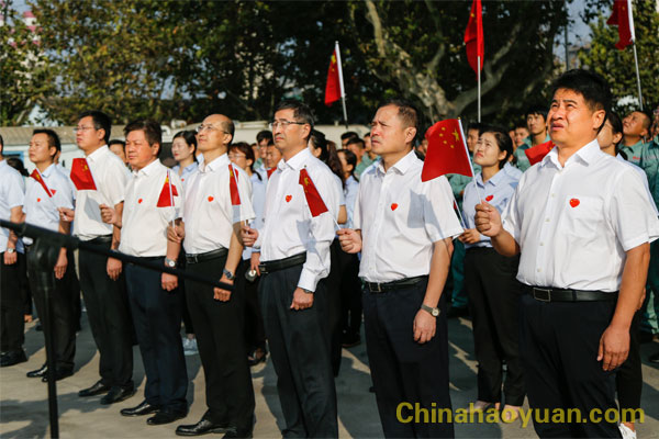 上午8時18分,升旗儀式開始。鮮艷的五星紅旗在莊嚴的國歌聲中冉冉升起,凡殿才等公司領導同員工代表注視著五星紅旗,齊唱國歌。