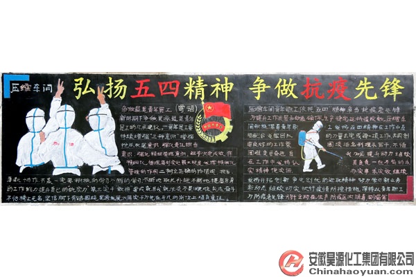 為紀(jì)念五四運(yùn)動(dòng)101周年,引領(lǐng)公司廣大團(tuán)員青年繼承和弘揚(yáng)“愛(ài)國(guó)、進(jìn)步、民主、科學(xué)”的五四精神,激發(fā)團(tuán)員青年勇挑重?fù)?dān)的責(zé)任意識(shí)和爭(zhēng)做時(shí)代先鋒的昂揚(yáng)斗志,昊源公司團(tuán)委在五四青年節(jié)來(lái)臨之際舉辦了 “弘揚(yáng)五四精神,爭(zhēng)做抗疫先鋒”主題黑板報(bào)評(píng)比活動(dòng)。
