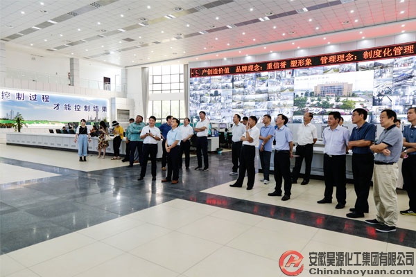在生產(chǎn)控制中心,凡殿才向張萬方一行匯報了昊源集團(tuán)發(fā)展簡介及園區(qū)項目建設(shè)及規(guī)劃情況。他說,昊源集團(tuán)資產(chǎn)總額81億元,是集研發(fā)、生產(chǎn)、銷售于一體的綜合性化工企業(yè)。尿素產(chǎn)品為安徽省名牌產(chǎn)品,生產(chǎn)規(guī)模為安徽省第一;嗎啉產(chǎn)品為安徽省名牌產(chǎn)品和安徽省高新技術(shù)產(chǎn)品,擁有6項國家專利,生產(chǎn)能力居亞洲首位;二甘醇胺產(chǎn)品為安徽省高新技術(shù)產(chǎn)品,擁有4項國家專利,是公司獨立研發(fā)、具有自主知識產(chǎn)權(quán)的產(chǎn)品,填補國內(nèi)空白。昊源公司現(xiàn)為國家高新技術(shù)企業(yè),擁有省級企業(yè)技術(shù)中心,是全國氮肥行業(yè)20強、安徽化工企業(yè)10強、安徽省民營企業(yè)100強、安徽工業(yè)企業(yè)100強企業(yè)。公司連續(xù)6年被中國石油和化學(xué)工業(yè)聯(lián)合會授予“年度能效‘領(lǐng)跑者’標(biāo)桿企業(yè)”。
