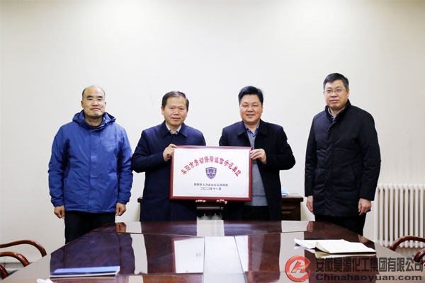 1月19日,潁東區(qū)人社局局長楊參軍一行來昊源公司調(diào)研,并代表省市人社部門頒發(fā)“安徽省勞動保障誠信示范單位”和“阜陽市勞動保障誠信示范單位”榮譽稱號獎牌。公司副總經(jīng)理高玉磊、總經(jīng)理助理潘家成、企管處處長張明參加授牌儀式。