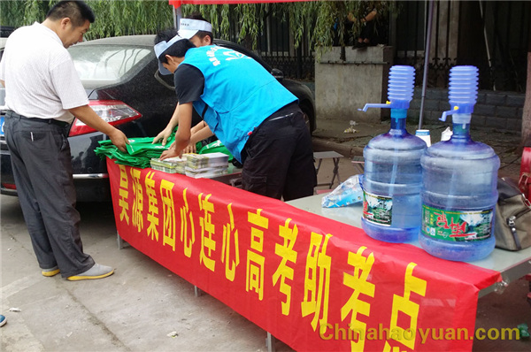 昊源集團(tuán)志愿者青年服務(wù)隊(duì)的隊(duì)旗,在人群中高高飄揚(yáng)。助考服務(wù)點(diǎn)圍滿了考生和家長(zhǎng),我們準(zhǔn)備了純凈水供考生、家長(zhǎng)飲用,還在樹蔭下準(zhǔn)備了許多小圓凳供陪考家長(zhǎng)們休息。