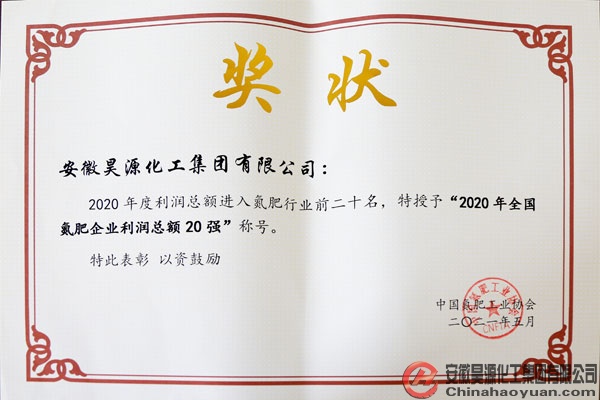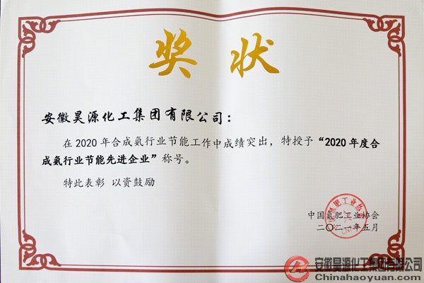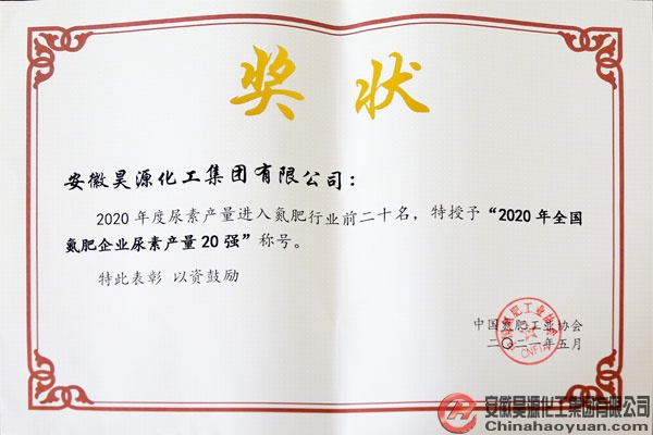 會(huì)上,安徽昊源化工集團(tuán)有限公司被授予 “2020年全國(guó)氮肥企業(yè)尿素產(chǎn)量20強(qiáng)”、“2020年全國(guó)氮肥企業(yè)合成氨產(chǎn)量20強(qiáng)”、“2020年全國(guó)氮肥企業(yè)利潤(rùn)總額20強(qiáng)”、“2020年度合成氨行業(yè)節(jié)能減排先進(jìn)企業(yè)” 4項(xiàng)榮譽(yù)稱號(hào)。