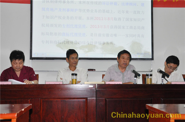 6月24日上午,昊源公司在綜合樓二樓職教中心舉行知識產(chǎn)權(quán)管理體系“貫標”培訓(xùn)會,市知識產(chǎn)權(quán)局局長戴玉斌、區(qū)科技局局長宮來龍、區(qū)知識產(chǎn)權(quán)局局長李金金、主任李瑾、安徽信拓律師事務(wù)所賈輝老師和鞠翔老師等人參加會議,公司領(lǐng)導(dǎo)高玉磊、潘家成及各部門負責(zé)人和知識產(chǎn)權(quán)管理相關(guān)人員出席會議。