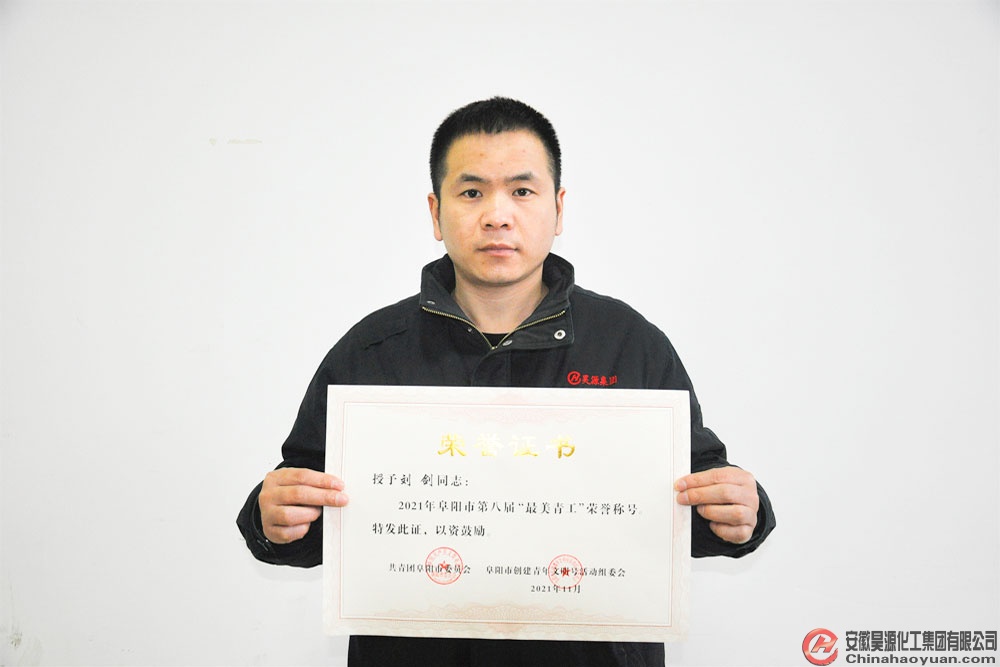 昊源園區(qū)合成工段劉劍獲阜陽市第八屆“最美青工”榮譽(yù)稱號(hào)