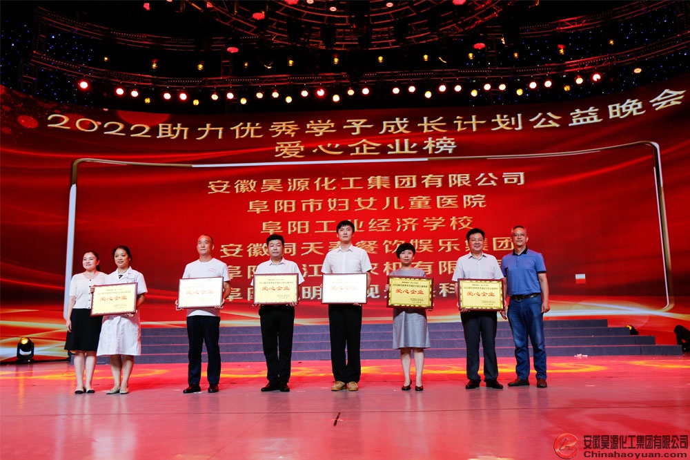 8月14日,阜陽廣播電視臺舉行了 “2022助力優(yōu)秀學(xué)子成長計劃公益晚會”,昊源公司黨委副書記、副總經(jīng)理高玉磊代表安徽昊源化工集團有限公司出席活動。會上,安徽昊源化工集團有限公司被授予“愛心企業(yè)”榮譽稱號,高玉磊作為企業(yè)代表為優(yōu)秀學(xué)生頒發(fā)勵志助學(xué)金。
