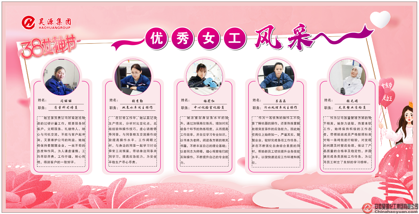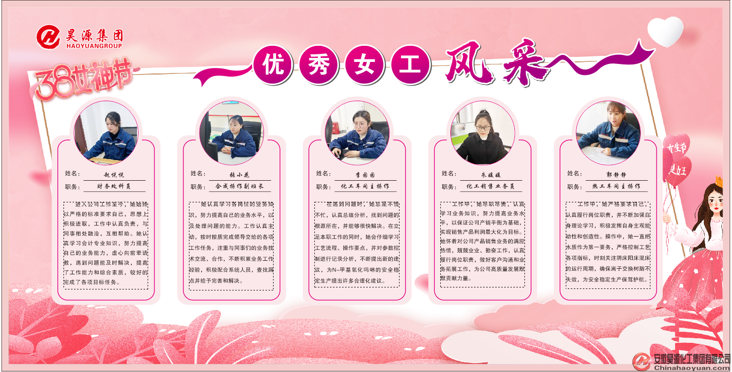 一直以來,昊源公司女員工們“巾幗不讓須眉”,以飽滿的熱情在各個崗位上默默耕耘,成為了推動公司健康快速高發(fā)展的中堅力量,展示了“半邊天”的靚麗風(fēng)采。