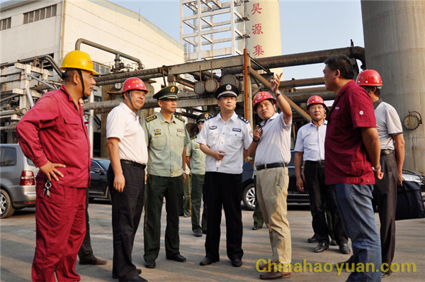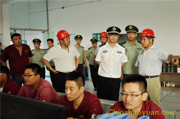 8月13日下午,市委常委、政法委書記、阜陽市公安局長劉立兵、阜陽市安監(jiān)局局長李哲、市消防支隊支隊長孟向東一行數(shù)十人蒞臨昊源公司檢查指導安全工作。公司常務副總經(jīng)理凡殿才、副總經(jīng)理張海生、高明林及安全科相關負責人陪同檢查。