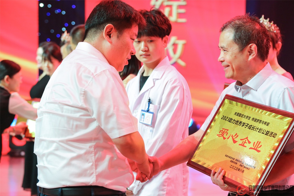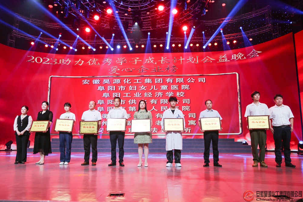 8月13日,由中共阜陽市委宣傳部、市關工委、市民政局、共青團阜陽市委、市婦聯(lián)、阜陽廣播電視臺共同主辦的“青春逢盛世 奮斗正當時,2023助力優(yōu)秀學子成長計劃公益晚會”,在阜陽廣播電視臺演播大廳舉行。公司黨委副書記、副總經(jīng)理楊捷代表昊源集團受邀出席晚會,并為優(yōu)秀學子頒發(fā)勵志助學金。會上,安徽昊源化工集團有限公司被授予“愛心企業(yè)”光榮稱號。