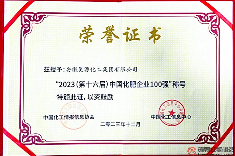 昊源公司榮獲“2023中國化肥企業(yè)100強”稱號