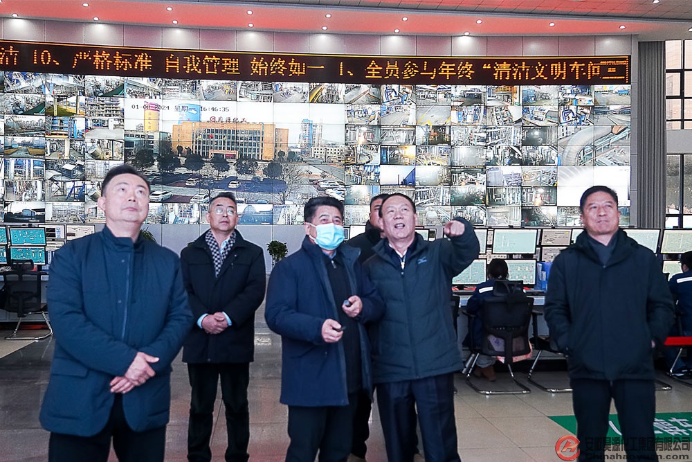 在生產(chǎn)控制中心,凡殿才向葉露中一行詳細(xì)匯報(bào)了園區(qū)項(xiàng)目建設(shè)進(jìn)展、運(yùn)行狀況、發(fā)展規(guī)劃及產(chǎn)品產(chǎn)能、用途等情況。
