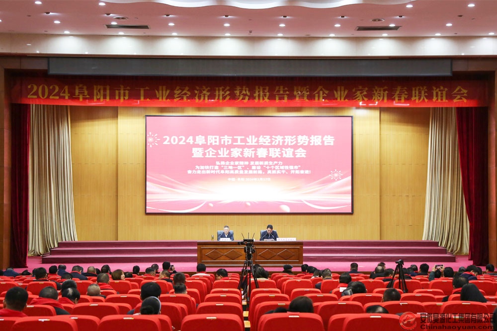 1月17日,2024阜陽市工業(yè)經(jīng)濟(jì)形勢報(bào)告暨企業(yè)家新春聯(lián)誼會在市委黨校舉行,阜陽市人民政府副市長虞建斌與會作工業(yè)經(jīng)濟(jì)形勢主旨報(bào)告,昊源公司黨委書記、董事長凡殿才出席會議。