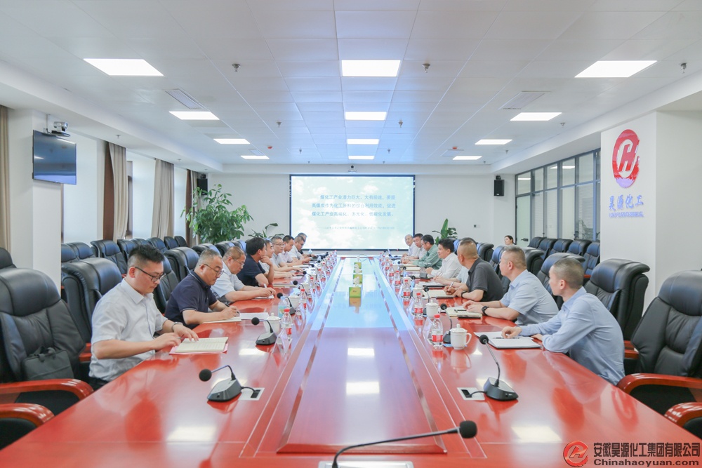 在昊源研發(fā)中心會議室,凡殿才向楊科生一行詳細(xì)介紹了公司生產(chǎn)經(jīng)營、煤炭用量、布局及物流運輸?shù)惹闆r,并就煤炭燃燒性能、外采品控、運輸成本及增量降費等方面提出意見和建議。