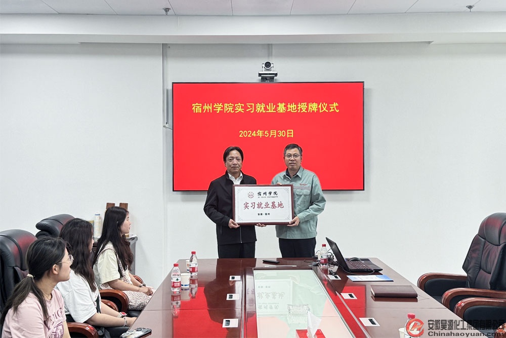 5月30日,昊源公司與宿州學(xué)院舉行聯(lián)合共建“實(shí)習(xí)就業(yè)基地”授牌儀式,宿州學(xué)院化學(xué)化工學(xué)院書(shū)記史洪偉、昊源公司總經(jīng)理助理潘家成、企管處處長(zhǎng)張明出席儀式。