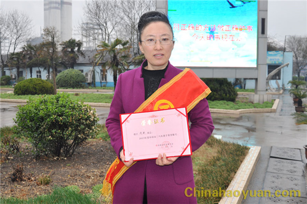 安徽昊源化工集團有限公司職工滑敏被阜陽市政府授予“三八紅旗手”榮譽稱號。