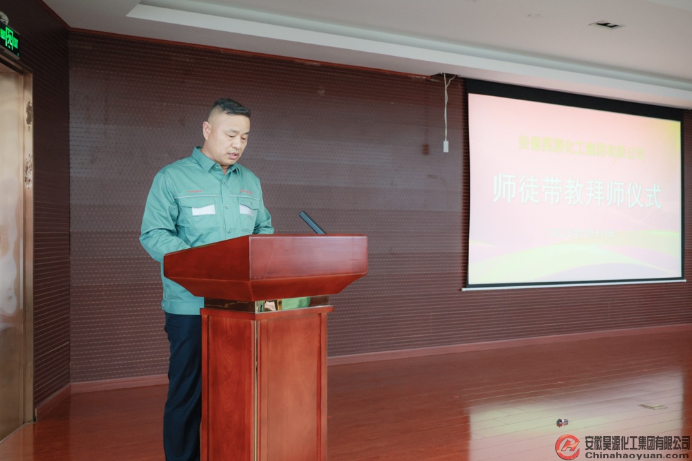 6月18日,昊源公司在園區(qū)培訓室舉行第四屆師徒帶教拜師儀式。公司黨委書記、董事長凡殿才,常務副總經(jīng)理高明林、黨委副書記、副總經(jīng)理楊捷,副總經(jīng)理田懷廣,總經(jīng)理助理吳珍漢、潘家成、李超群等領導出席儀式。