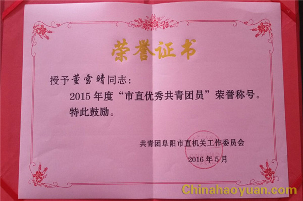 2015年,昊源公司青年員工立足崗位認真工作,走出公司服務(wù)社會,受到社會各界好評,喜獲阜陽團市委多項榮譽。 航天爐氣化車間董雪晴獲得阜陽市直優(yōu)秀團員、凈化車間馬明獲阜陽市優(yōu)秀共青團員榮譽稱號,電儀團支部獲得阜陽市直“五四紅旗團支部”榮譽稱號。榮譽是對昊源青年員工工作的肯定,也是對未來工作的鞭策。