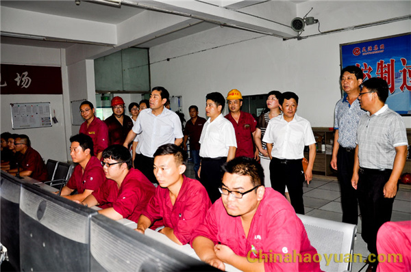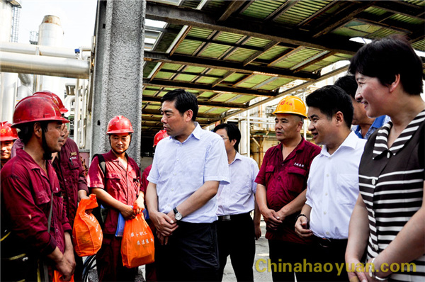 2016年7月27日,阜陽市連續(xù)高溫天氣,給人們生活、工作帶來不便。市委副書記盧仕仁在市總工會黨組書記、副主席房繼紅及有關(guān)部門人員陪同下,冒著高溫酷暑蒞臨昊源公司,慰問高溫環(huán)境下仍堅(jiān)守生產(chǎn)一線的干部、員工。公司黨委書記、董事長凡殿才,副總經(jīng)理張海生,總經(jīng)理助理吳珍漢,工會副主席戚偉、楊波等陪同。