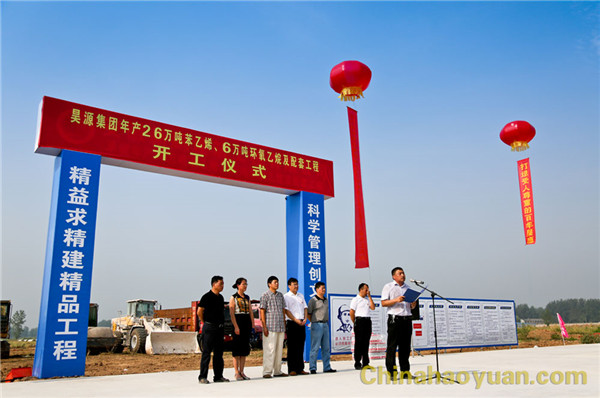 高明林在開工儀式上講話。他代表昊源集團感謝阜陽市委、市政府及潁東區(qū)委、區(qū)政府對年產(chǎn)26萬噸苯乙烯和6萬噸環(huán)氧乙烷及配套項目的大力支持,從而保證了項目的快速推進和及時開工。