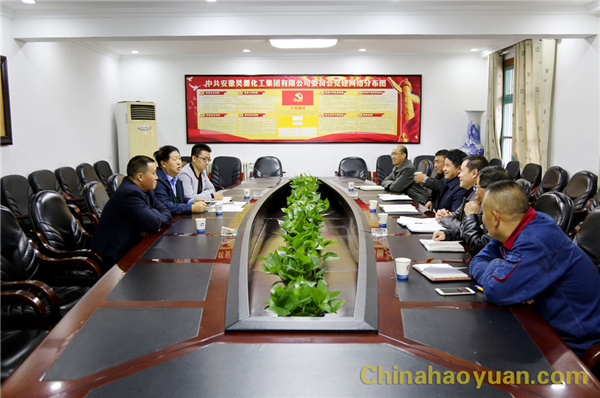 凡殿才向賈國華一行匯報(bào)了昊源公司近期生產(chǎn)經(jīng)營情況,阜陽煤基新材料產(chǎn)業(yè)園區(qū)規(guī)劃、建設(shè)進(jìn)度,昊源公司新產(chǎn)品開發(fā)、科技創(chuàng)新等。