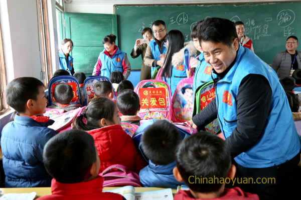 阜陽是農(nóng)業(yè)大市,常年外出務工農(nóng)民超過300萬。12月3日,在集團公司董事長總經(jīng)理凡殿才的帶領(lǐng)下, 昊源集團青年志愿者們驅(qū)車一個多小時,來到臨泉呂寨陳小寨村小學!一進學校就感覺到了濃濃的校園氣息,一大群活潑可愛的小朋友們在小操場上打打鬧鬧,有跳繩,做操,跑步!昊源集團青年志愿者服務隊為孩子們送去冬日暖陽,讓需要關(guān)愛和陪伴的留守兒童感受到全社會的愛心和溫暖。凡殿才親手將關(guān)愛書包發(fā)放到每個孩子的手中,并囑咐他們父母雖然不在身邊,但是關(guān)心愛護他們的人卻有很多。