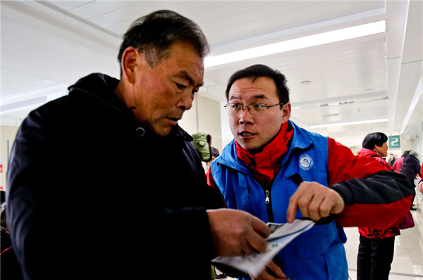 春節(jié)期間,受外出務(wù)工回鄉(xiāng)人員就診等綜合因素影響,阜城各醫(yī)院門診迎來就診高峰。其中,市人民醫(yī)院2月3日就診量達(dá)5700多人,單日就診人數(shù)達(dá)歷史最高。為方便患者就醫(yī),市人民醫(yī)院團(tuán)委和心連心公益志愿者協(xié)會(huì)、昊源集團(tuán)志愿者服務(wù)隊(duì)聯(lián)合發(fā)起“志愿服務(wù)在醫(yī)院”公益活動(dòng),志愿者配合醫(yī)院工作人員為廣大患者導(dǎo)診服務(wù)。