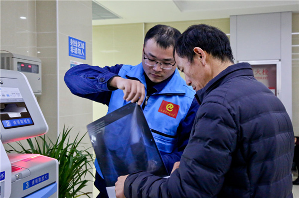 目前,在市人民醫(yī)院城南新區(qū)門診設(shè)置有10余臺(tái)自助機(jī),不但可以掛號,還可以繳費(fèi),查詢。“您在這里刷一下身份證,就會(huì)出來一張就診卡,您劃錢進(jìn)去,掛個(gè)號……”志愿者張海華在一臺(tái)自助機(jī)前一步步地指導(dǎo)患者操作。“現(xiàn)在看病就診都智能化了,但是有很多患者并不會(huì)使用?!睆埡HA是安徽昊源化工集團(tuán)有限公司的一名職工,這些天只要有空他就會(huì)來醫(yī)院義務(wù)服務(wù),為此,他犧牲了自己的休息時(shí)間。“最忙的時(shí)候,都不敢多喝水。因?yàn)槟遣皇且粋€(gè)人一個(gè)人地來問,而是一群人蜂擁上前來咨詢。”