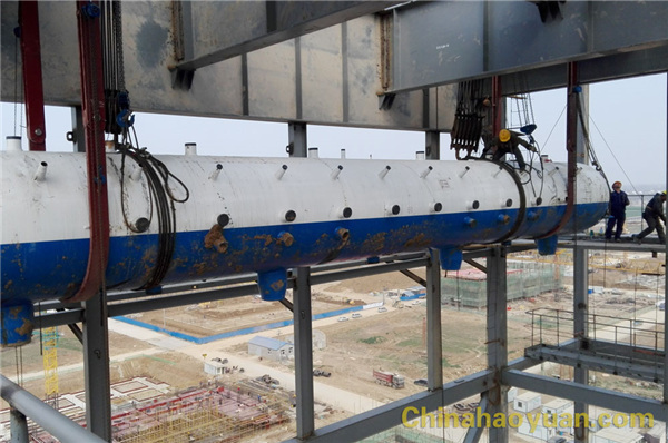 在昊源公司口孜園區(qū)項(xiàng)目鍋爐組的不斷努力下,經(jīng)過四個(gè)多月的緊張施工,鍋爐主體框架已基本安裝到位。2017年3月11日,在鍋爐項(xiàng)目組的監(jiān)管下,施工單位密切配合,按照項(xiàng)目進(jìn)度如期對汽包進(jìn)行吊裝。汽包于上午9時(shí)許開始吊裝,經(jīng)過數(shù)小時(shí)忙碌,于下午15時(shí)許一次吊裝成功。汽包就位后,水冷壁、旋風(fēng)分離器等相關(guān)設(shè)備、部件的安裝隨后進(jìn)行,整個(gè)安裝工作面全面展開。鍋爐工段是口孜園區(qū)項(xiàng)目最早開車運(yùn)行的工段,鍋爐項(xiàng)目組全體成員克服困難,確保項(xiàng)目如期完工。