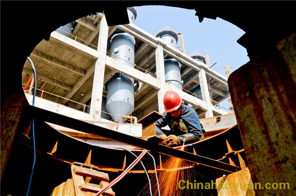 在鍋爐工段,施工人員正在忙著筑爐?!板仩t工段是園區(qū)項(xiàng)目開(kāi)車(chē)的重要工段,也是所有工段最先開(kāi)車(chē)的工段。因?yàn)?,只有鍋爐工段開(kāi)車(chē)正常,產(chǎn)生出合格的蒸汽后,其它工段才能進(jìn)行吹除、試壓、試漏、預(yù)熱管道、預(yù)熱設(shè)備。所以,鍋爐工段的正常運(yùn)行,直接影響到整個(gè)項(xiàng)目的試運(yùn)行?!睙崃ο到y(tǒng)負(fù)責(zé)人沈獻(xiàn)介紹說(shuō)。