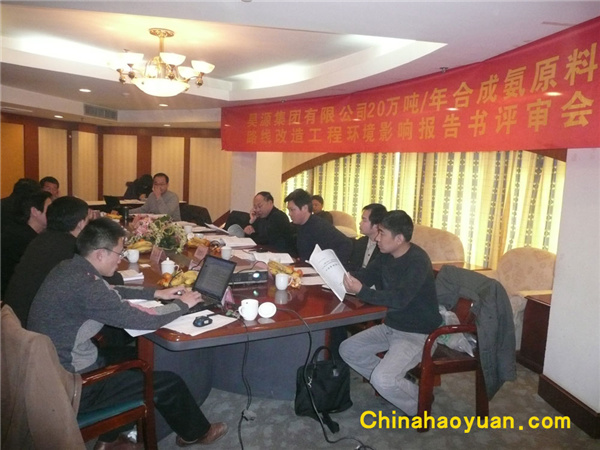 2009年12月22日,由安徽省環(huán)境保護(hù)廳組織的安徽昊源化工集團(tuán)有限公司《20萬(wàn)噸/年合成氨原料路線改造工程項(xiàng)目環(huán)境影響報(bào)告書(shū)》專家評(píng)審會(huì),在阜陽(yáng)市白金漢宮大酒店六樓會(huì)議室隆重舉行。參加本項(xiàng)目環(huán)境影響報(bào)告書(shū)評(píng)審的單位有安徽省環(huán)境保護(hù)廳、安徽省環(huán)境工程評(píng)估中心、安徽省環(huán)境科學(xué)研究院(環(huán)評(píng)單位)、阜陽(yáng)市環(huán)境保護(hù)局、蘭州航天石化工程有限公司(設(shè)計(jì)單位)、安徽昊源化工集團(tuán)有限公司。會(huì)議邀請(qǐng)7位省市環(huán)境保護(hù)專家組成評(píng)審團(tuán)對(duì)該項(xiàng)目進(jìn)行評(píng)審。