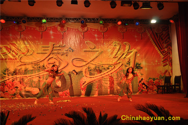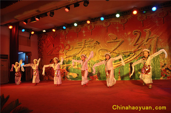 本臺晚會內(nèi)容豐富、形式多樣、引人入勝。 大型民族舞《歡慶中國》拉開了晚會的帷幕,吳冰、張東華等的三句半《表表咱昊源》表出了咱昊源人的心聲,一段雙簧《逗樂》把觀眾逗的捧腹大笑,舞蹈《貓舞》展現(xiàn)了年輕一代昊源人的火熱激情。小朋友饒靜蕾一段美倫美奐的印度風(fēng)情舞蹈《天使之吻》把觀眾帶入了異域的境界,將晚會推向了高潮。
