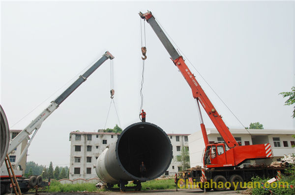圖為,工人們冒著炎炎烈日在吊裝、檢查機(jī)械設(shè)備。