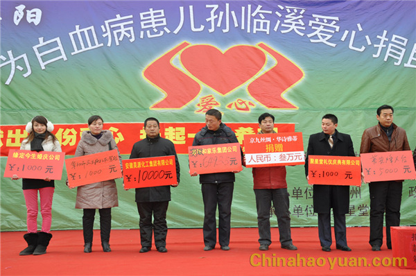 據(jù)悉,潁州區(qū)委黨校教師呂超穎5歲兒子孫臨溪不幸患上白血病,前期治療2年半,已花費(fèi)近60萬(wàn)元。孩子目前病情有所加重,正在天津血液病專(zhuān)科醫(yī)院治療,急需造血干細(xì)胞移植手術(shù),但是這個(gè)家庭已經(jīng)債臺(tái)高筑,雖經(jīng)本人及單位多方籌措,仍然無(wú)力籌到干細(xì)胞移植所需數(shù)十萬(wàn)元費(fèi)用,孩子治療陷入困境,生命隨時(shí)面臨危險(xiǎn)。公司領(lǐng)導(dǎo)得知此事后,迅速派出工會(huì)人員到捐助活動(dòng)現(xiàn)場(chǎng)捐出10000元現(xiàn)金表達(dá)愛(ài)心,愿凝聚集體的愛(ài)心,為孩子再造生命的綠洲!