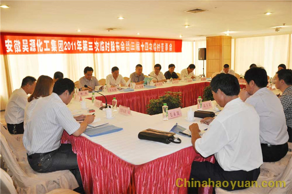 7月19日上午,昊源集團公司2011年臨時股東會暨三屆董事會第十四次臨時會議在阜陽市國際大酒店隆重召開。出席此次會議的有晉煤集團巡視辦巡視二組組長王建國等領(lǐng)導(dǎo),參加會議的有,昊源集團公司股東和股東代表、公司董事、監(jiān)事。會議由公司董事長鄭高潮先生主持。 此次會議審議通過了《《關(guān)于改選公司董事長的議案》等五項議案。