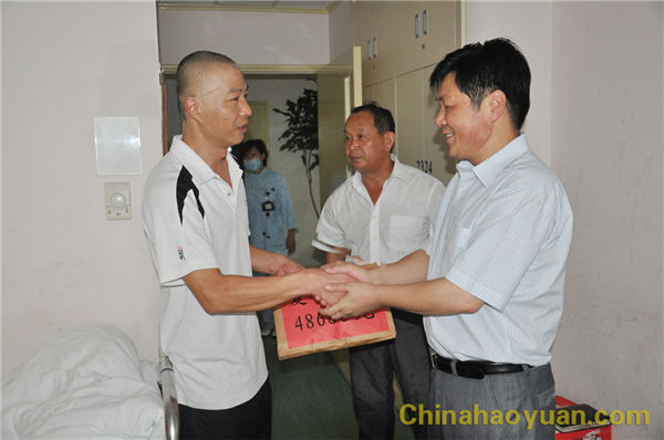 8月17日,公司副總經(jīng)理高玉磊攜工會副主席滑海東、李文平一行,帶著公司和全體員工的重托與祝愿,攜著沉甸甸的愛,不遠千里趕赴上海腫瘤醫(yī)院,及時的將愛心捐款送到翟金良的手中。