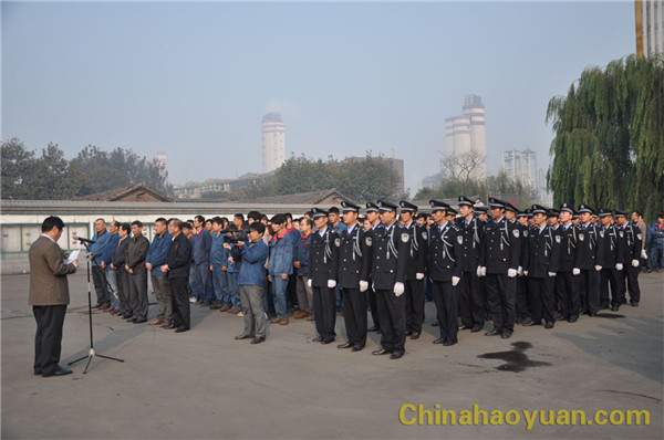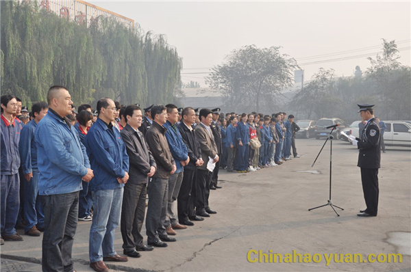 隨著雄壯的國(guó)歌聲響起,在經(jīng)警隊(duì)旗手的護(hù)送下,五星紅旗冉冉升起。公司黨委副書(shū)記李繼忠作軍訓(xùn)總動(dòng)員講話。他說(shuō),軍訓(xùn)月活動(dòng)是昊源集團(tuán)企業(yè)文化建設(shè)的重要組成部分,也是提高員工隊(duì)伍素質(zhì),培養(yǎng)全員協(xié)調(diào)一致,共同向上和展現(xiàn)企業(yè)員工精神風(fēng)貌的重要體現(xiàn)。同時(shí),軍訓(xùn)也是一種學(xué)習(xí),也是一種磨練和考驗(yàn)。希望全體干部員工充分準(zhǔn)備、以飽滿的熱情、頑強(qiáng)的毅力和旺盛的斗志參加軍訓(xùn),同時(shí),他還對(duì)參加軍訓(xùn)的員工提出具體要求,希望參加軍訓(xùn)的員工都能以?xún)?yōu)異成績(jī)完成本次軍訓(xùn)任務(wù)。