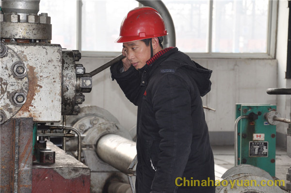 碳化車間維修人員搶修渦輪機(jī) 壓縮機(jī)操作人員進(jìn)行油水排污