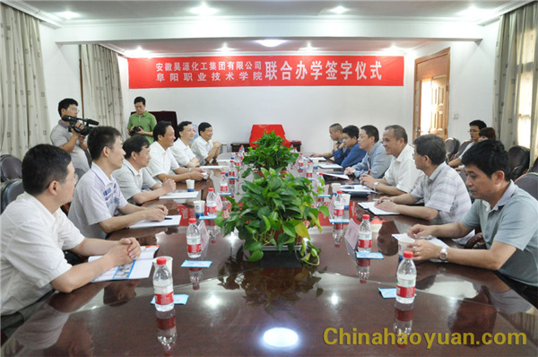 隨后,雙方代表在簽約儀式上簽字。阜陽(yáng)職業(yè)技術(shù)學(xué)院實(shí)習(xí)就業(yè)基地正式在昊源集團(tuán)掛牌。