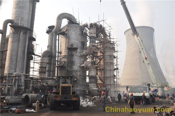 此次4#變換工藝整改,是將原來的中低變工藝徹底轉(zhuǎn)變?nèi)妥兞鞒?。為確保項(xiàng)目安全順利的實(shí)施,公司專門成立了技術(shù)攻關(guān)指揮小組,進(jìn)行現(xiàn)場指導(dǎo)作業(yè)。根據(jù)現(xiàn)有設(shè)備的流程情況,技術(shù)組人員通過現(xiàn)場觀察測量,并經(jīng)詳細(xì)計(jì)算和論證后制定了詳細(xì)的、完整的技改方案。采取將原有中變爐改為全低變的一、二段,段間增設(shè)增濕器,實(shí) 施增濕器噴水取代煤氣冷激,同時(shí)對原飽和塔、主熱交和水調(diào)溫器等設(shè)備進(jìn)行改造,有效提高了其傳質(zhì)傳熱效率。此次改造充分利用了原有的設(shè)備,實(shí)現(xiàn)公司提出的用時(shí)短、方案優(yōu)、投資省的要求。此次變換改造方案順利的實(shí)施,無不體現(xiàn)出昊源人的智慧和力量。