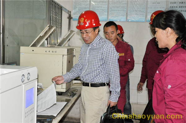 王成銀一行首先來到公司化工車間分析室、中心化驗(yàn)室,檢查公司的檢測(cè)設(shè)備配備情況,現(xiàn)場(chǎng)查驗(yàn)了分析檢驗(yàn)各類記錄,并向隨同人員詢問檢驗(yàn)流程和檢驗(yàn)產(chǎn)品種類。
