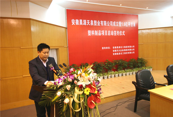 簽約儀式上,昊源集團饒金鐸董事長信心百倍地說:“我們堅信,在市委、市政府和社會各界的大力支持下,天大集團、臨化股份、昊源集團精誠團結(jié)合作,安徽昊源天泉塑業(yè)有限公司必將取得驕人的發(fā)展成果,必將為阜陽的經(jīng)濟建設(shè)做出新的貢獻!”