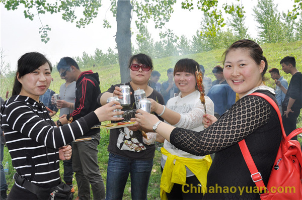 稍作休息,大家便開始了此次燒烤活動(dòng)的準(zhǔn)備工作,拾柴火、生爐子、串肉串,一片熱火朝天的忙碌景象。