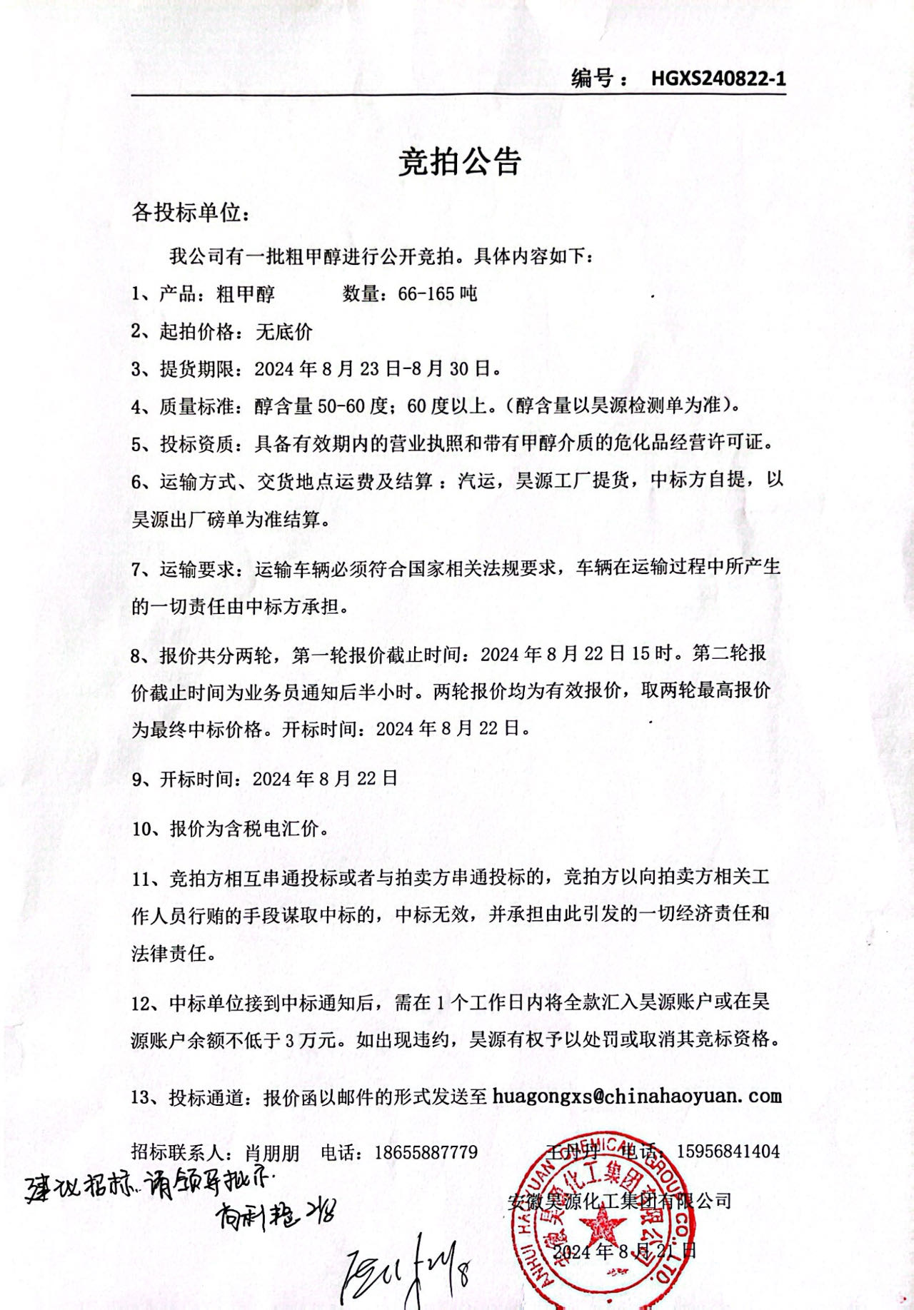 上一條:化工銷(xiāo)售粗甲醇銷(xiāo)售招標(biāo)公告下一條:化肥銷(xiāo)售工業(yè)鹽、無(wú)水硫酸鈉銷(xiāo)售招標(biāo)公告