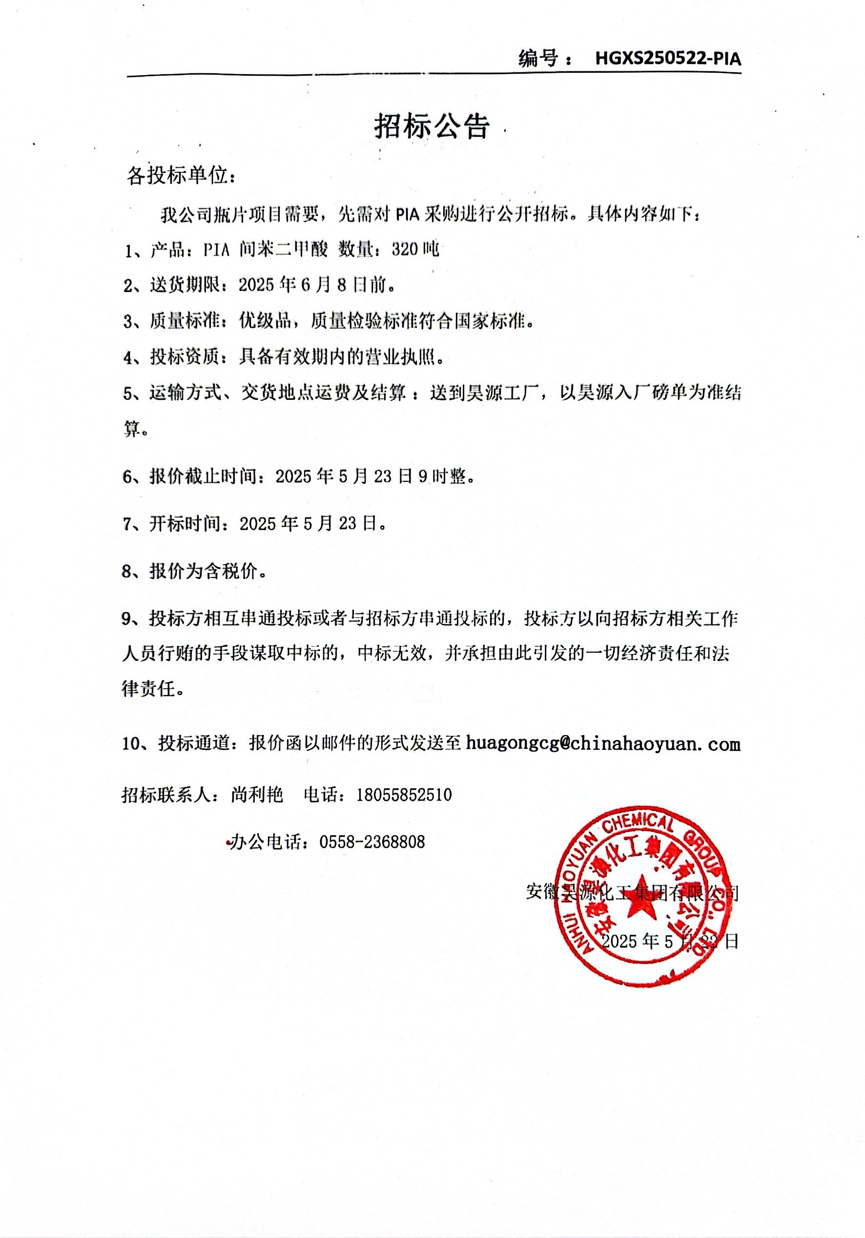 上一條:一批無水硫酸鈉、工業(yè)鹽銷售招標(biāo)公告下一條:化工銷售粗甲醇銷售招標(biāo)公告